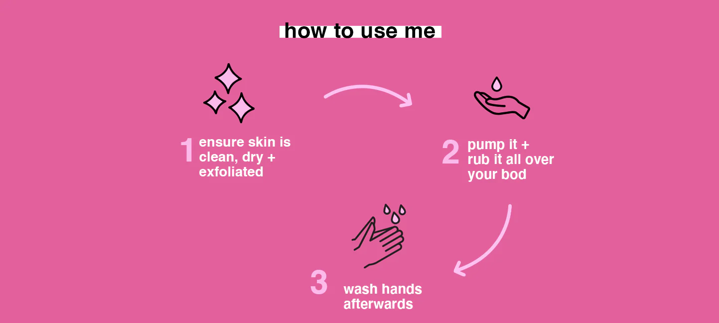 - i'm a transfer-resistant self tan gel that you can apply & go glow your own way... no rinse required