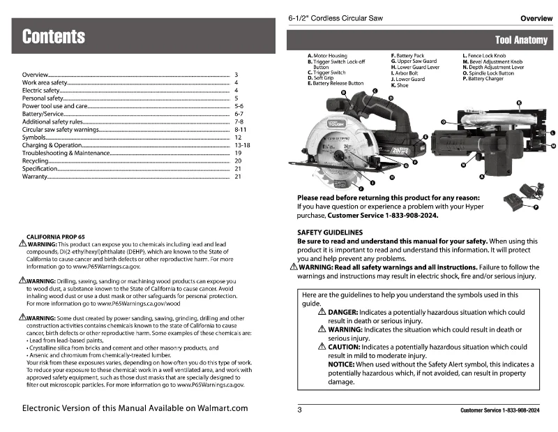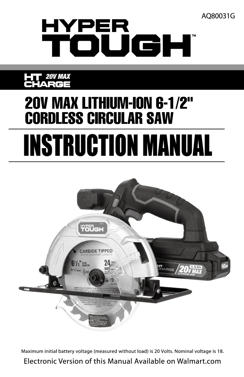Hyper Tough 20V Max Lithium-ion Cordless 6-1/2 inch Circular Saw with 1.5Ah Lithium-ion Battery, Charger, Blade & Rip Fence
