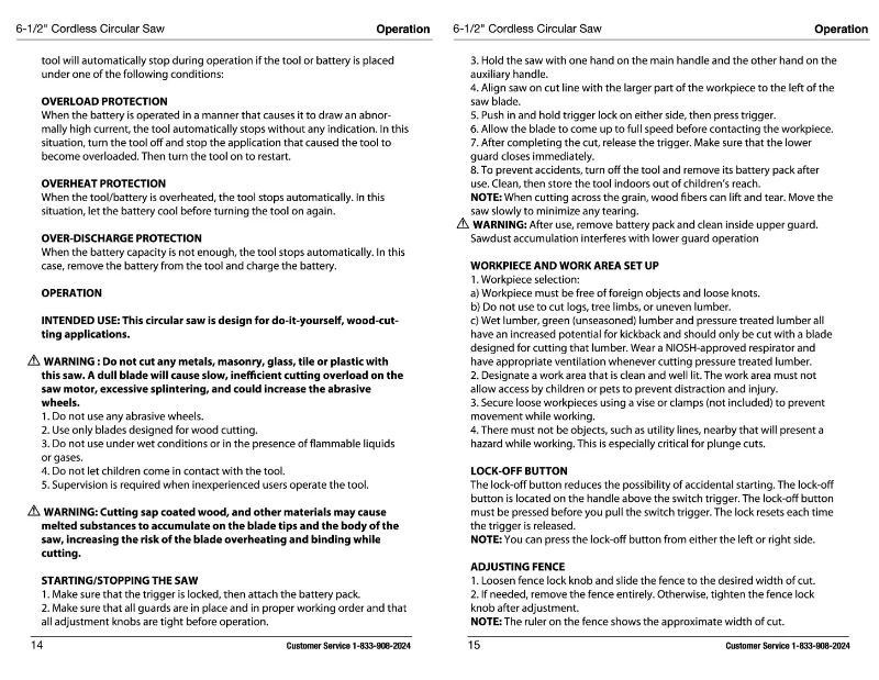 20V Max Lithium Ion Cordless 6-1/2 inch Circular Saw with 1.5Ah Lithium-ion Battery, Charger, Blade & Rip Fence