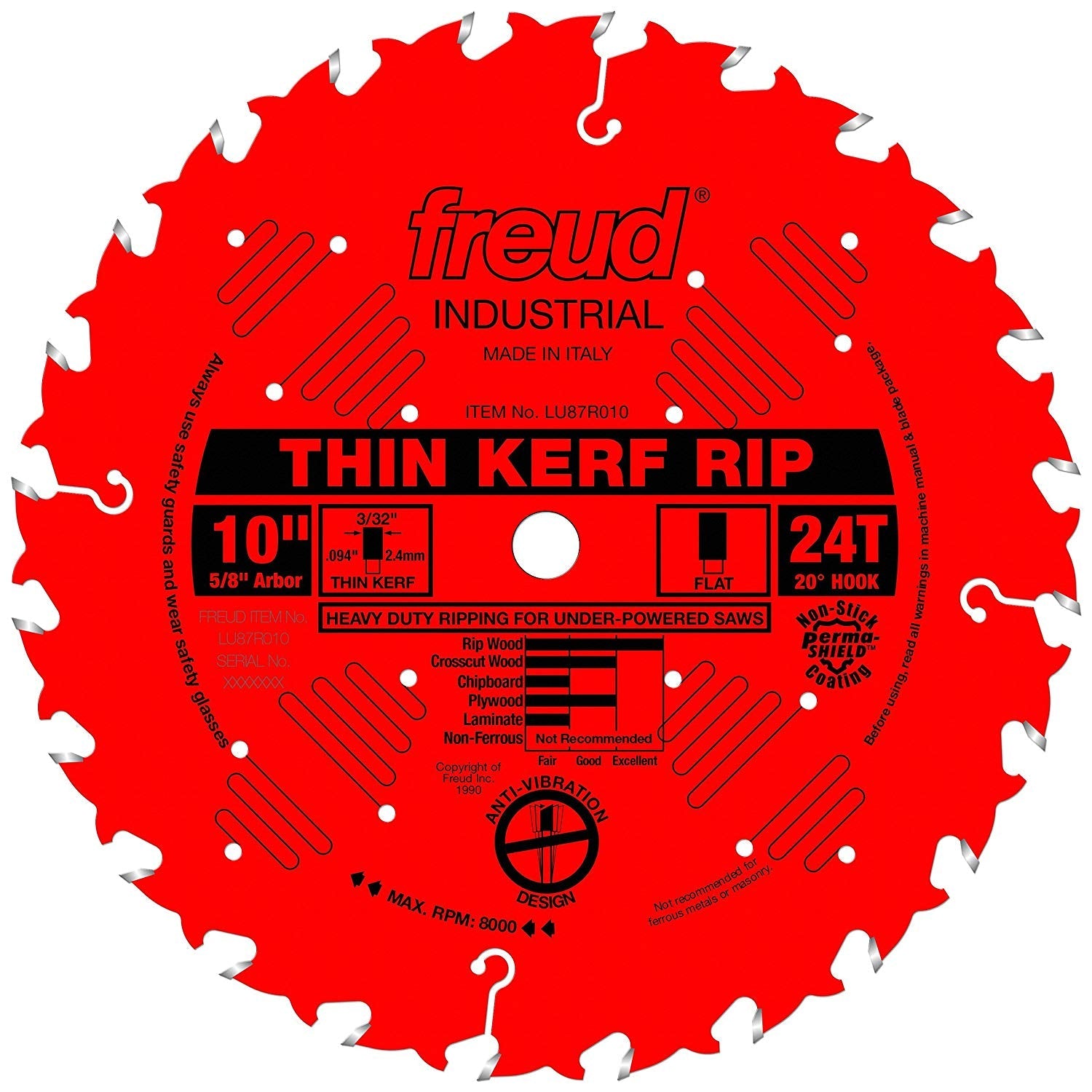 Freud LU87R010 Thin Kerf Rip Carbide Circular Saw Blade, 24-Teeth, 5/8 Inch Arbor, 10 Inch Dia