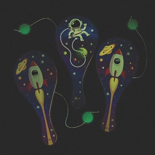 - Glow in the dark balls with space paddle makes for an amazing game which you can play with anyone