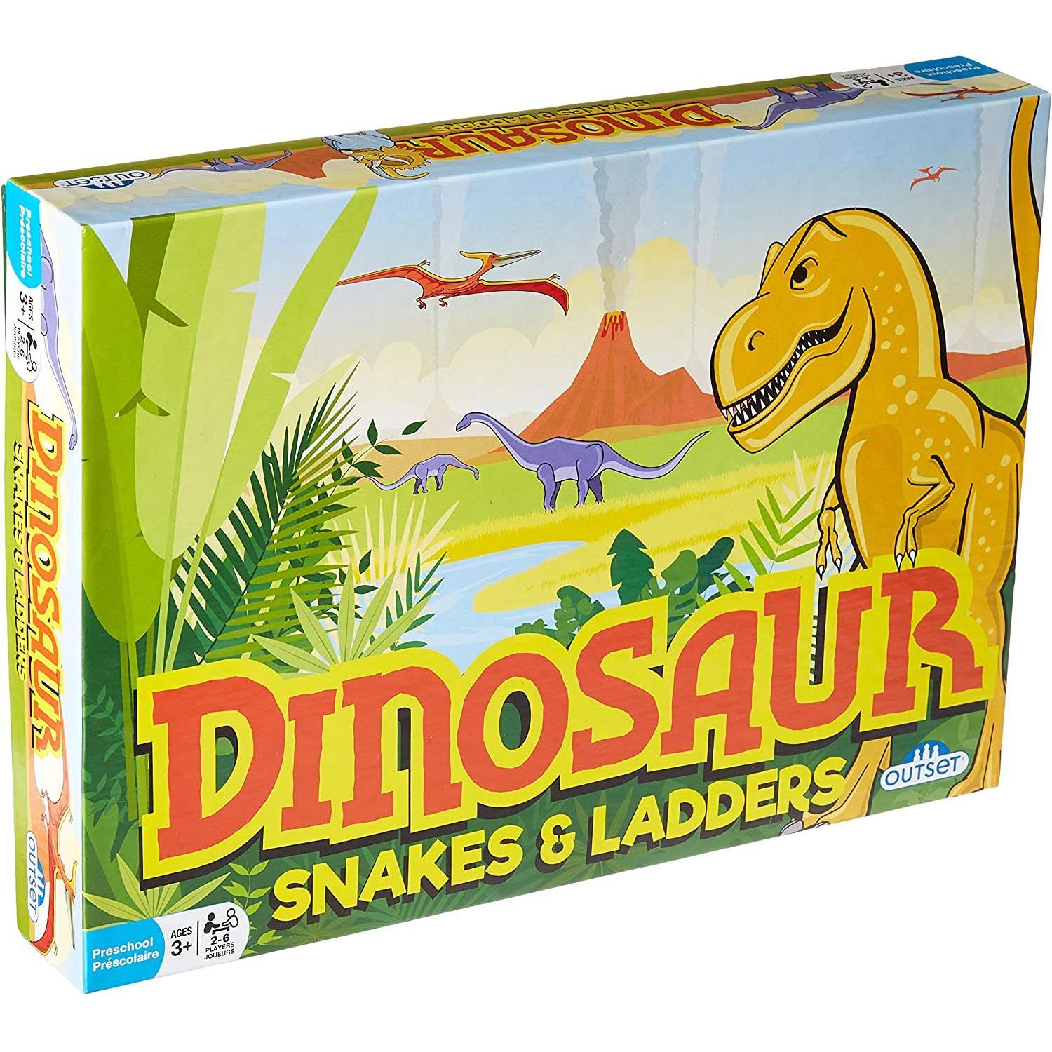 Dinosaur snakes and ladders is a scale-raising, prehistoric Dino adventure. Choose your favorite dinosaur playing piece and be the first to race around the board to get to the new dyno-baby egg before it hatches. Learn number recognition, basic counting, direction/movement comprehension, and social development. This game does not require any reading skills.