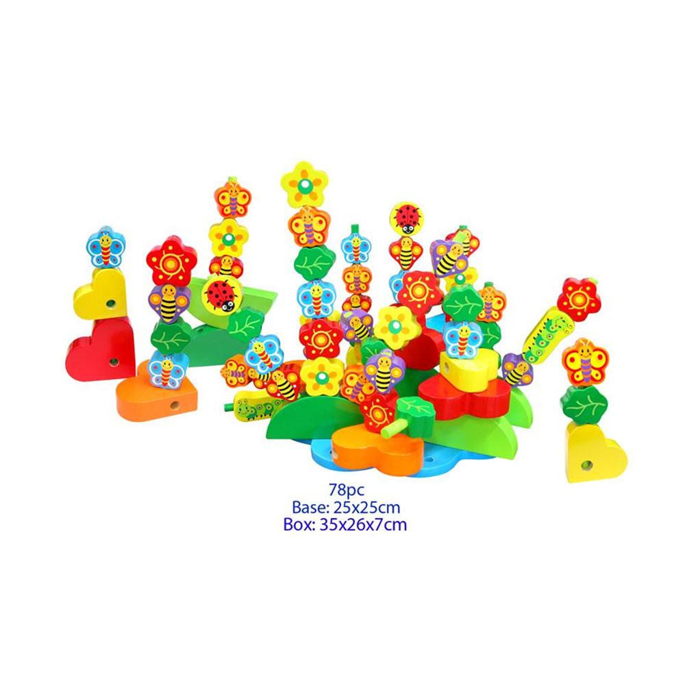 This is a beautifully crafted wooden toy for your child or childcare centre. Visually stunning, the child will stack the different wooden coloured blocks onto the rods which are stuck into base of toy, to build a garden to be proud of. There is lots to put into the garden, assorted leaves, flowers, lady birds, bees, caterpillars - this resource really does engage the child's imagination! Wooden pieces painted with non toxic child friendly paint.